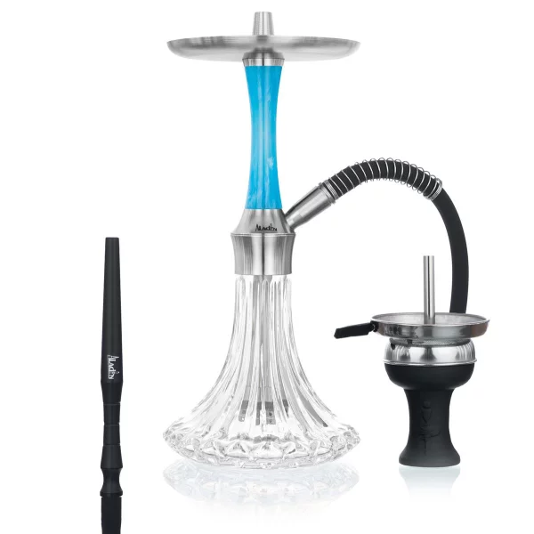 Das Glas ist sehr massiv und sorgt dafür, dass die Shisha sehr stabil steht. Dank des bald zusätzlich erwerbbaren Steckbowl-Adapters kann die Shisha mit allen Steckbowls verwendet werden.