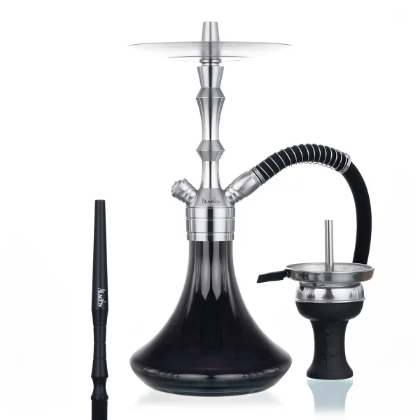 Mit der MVP 360 Schwarz Gastro Shisha aus dem Hause Aladin bekommst Du ein richtiges Kraftpaket im Kleinformat zum fairen Preis. Die Gastro Version richtet sich eher an Shisha-Bars und jeden, der es etwas nostalgischer mag, denn sie hat ein Gewinde für den Kopfadapter und verfügt über 1 Anschluss, sowie 1 Ventil.